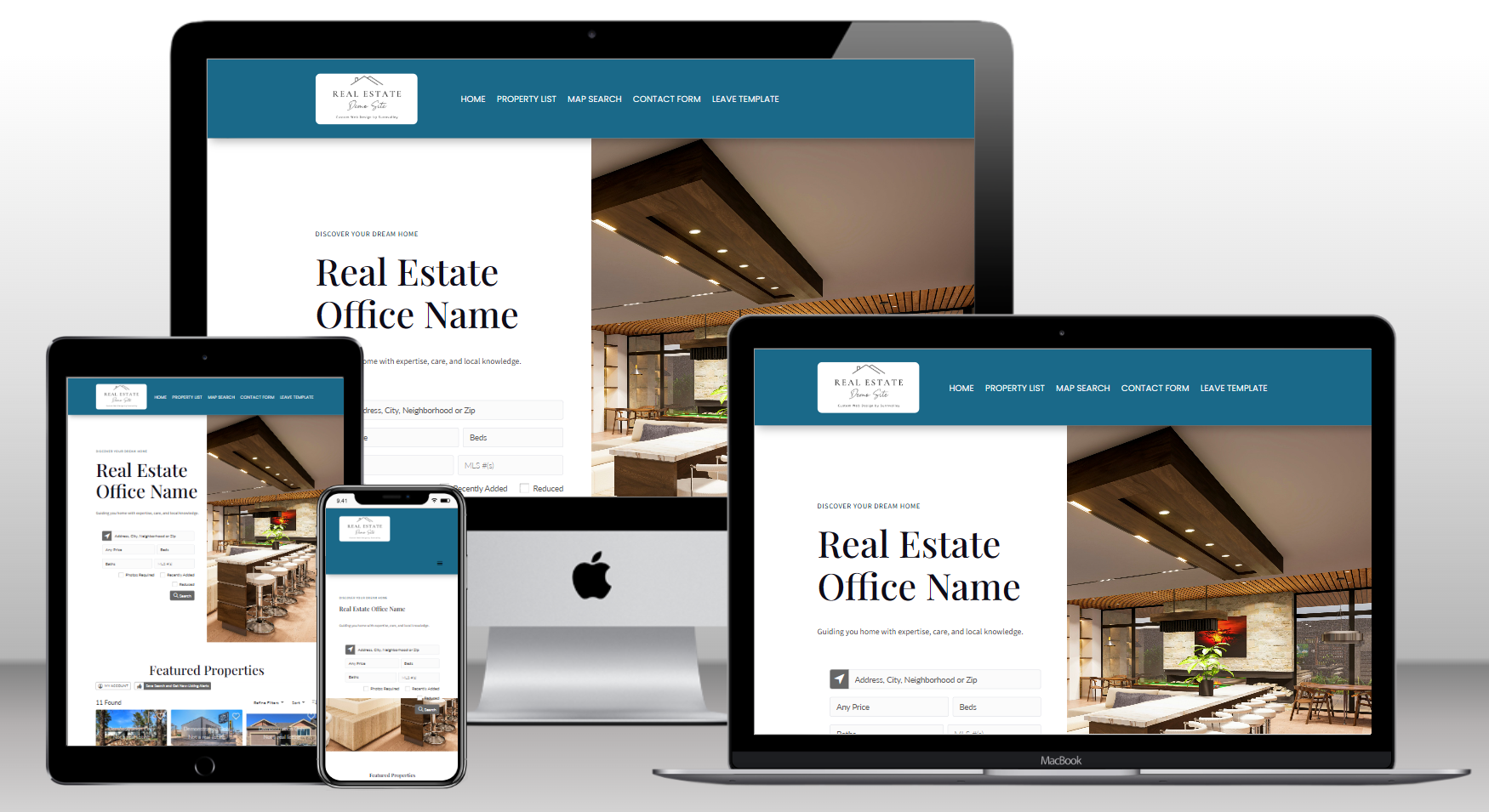 A simple, no-clutter design that puts your featured listings and property search front and center. Ideal for agents who want function, clarity, and ease of use. We’ll add your logo and brand colors.